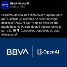 BBVA México anunció una alianza con OpenAI para ofrecer a sus clientes acceso gratuito a ChatGPT durante tres meses, una…
