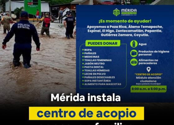 Mérida instala centro de acopio en apoyo a familias de Veracruz